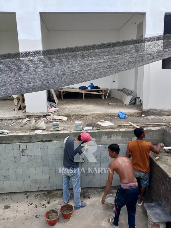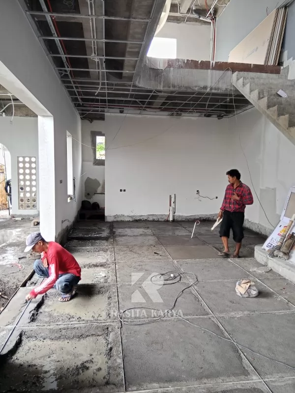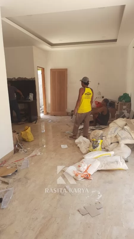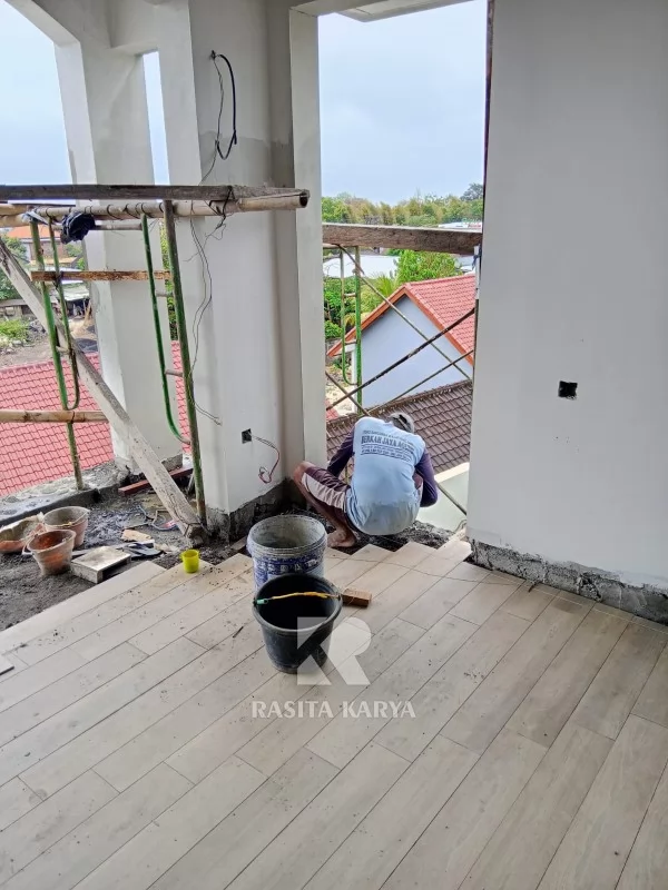Pembangunan Villa di Jimbaran Kuta Selatan: Rabatan lantai terrazo, pasang keramik kamar dan kamar mandi, pasang rangka plafon #kutaselatan #jasabangunvilla