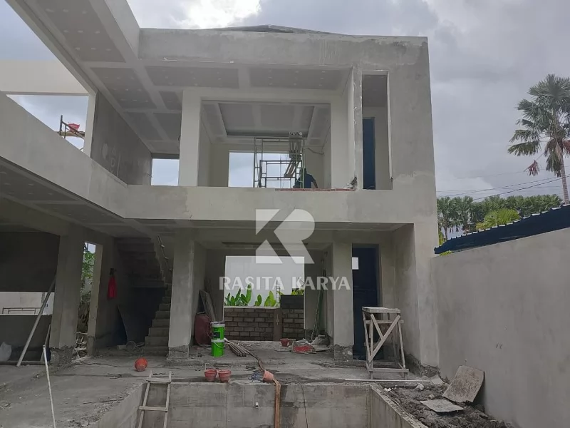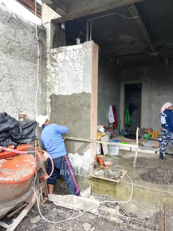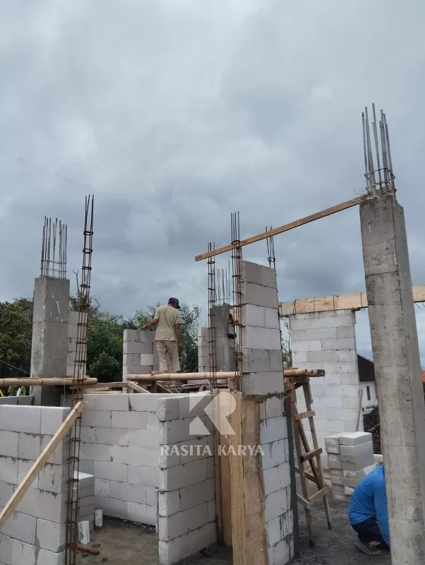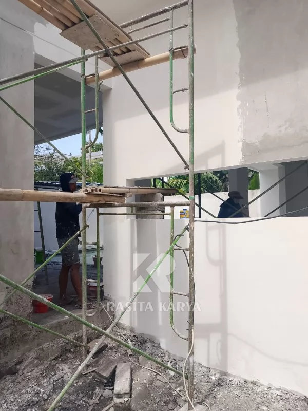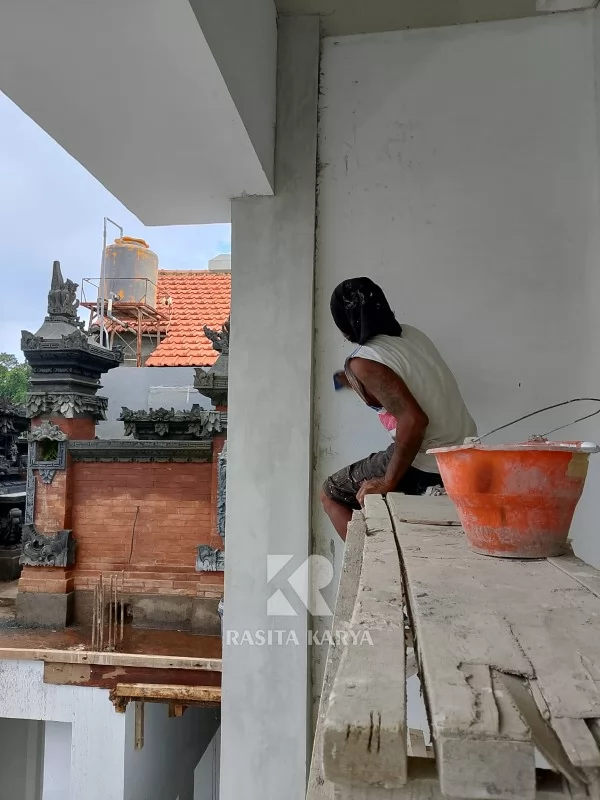 Pembangunan Villa di Ubud, Gianyar: acian tembok dalam dan tembok luar, ngecor penambahan plat beton #ubud #jasabangunvilla