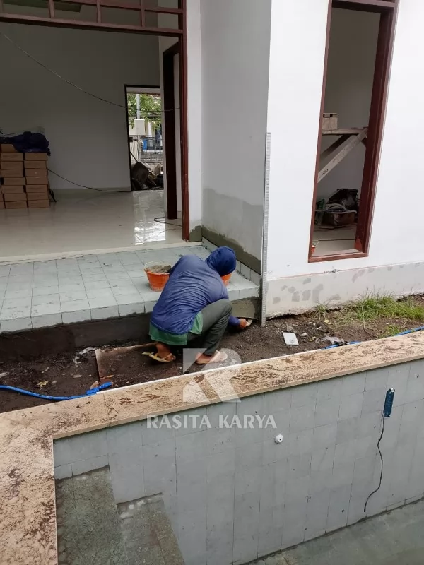 Proyek Pembangunan Rumah Tinggal Sidakarya Denpasar : Pasang keramik teras, Plamir & cat tembok luar samping, plin teras belakang #jasabangunrumah #sidakarya #denpasar