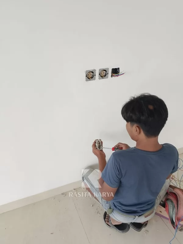 Proyek Pembangunan Rumah Tinggal Sidakarya Denpasar : Pasang stop kontak dan saklar Lt2, pelamiran dan pengecatan #jasabangunrumah #sidakarya #denpasar