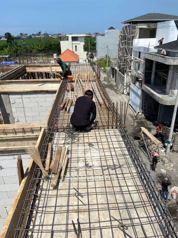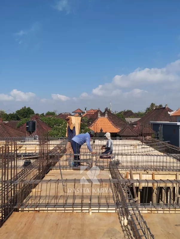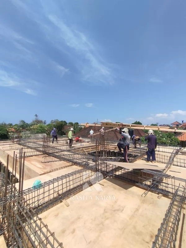 Pembangunan Villa M di Seminyak Kuta: begisting balok dak, ulat besi pelat atap, instalasi pipa listrik #seminyak #jasabangunvilla