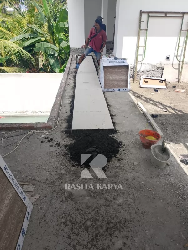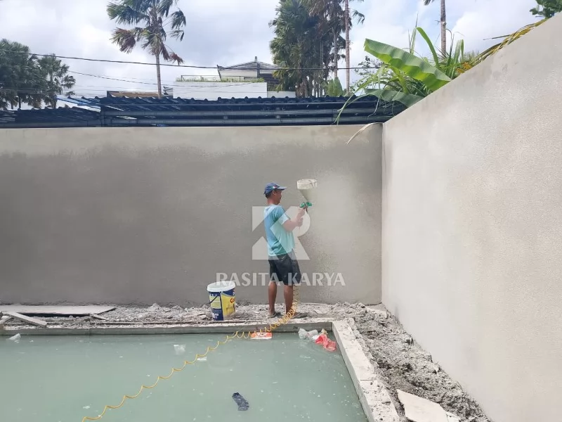 Pembangunan Rumah di Sibang, Badung: plester aci tembok pagar, tukang conwood, keramik dan texturan #sibang #jasabangunrumah