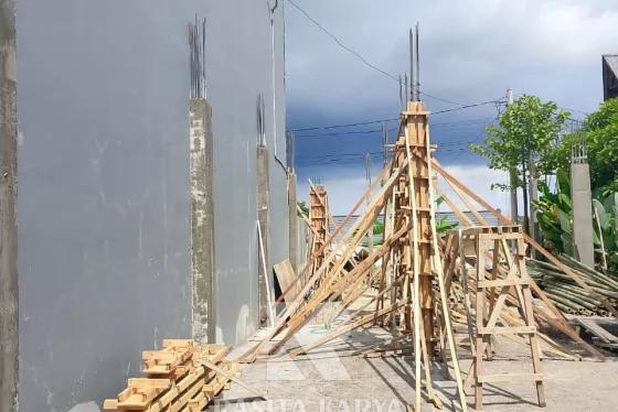 Pembangunan Ruko dan Kost Kosan di Kuta: pembesian dan bekisting plat atap ruko pondasi menerus kosan