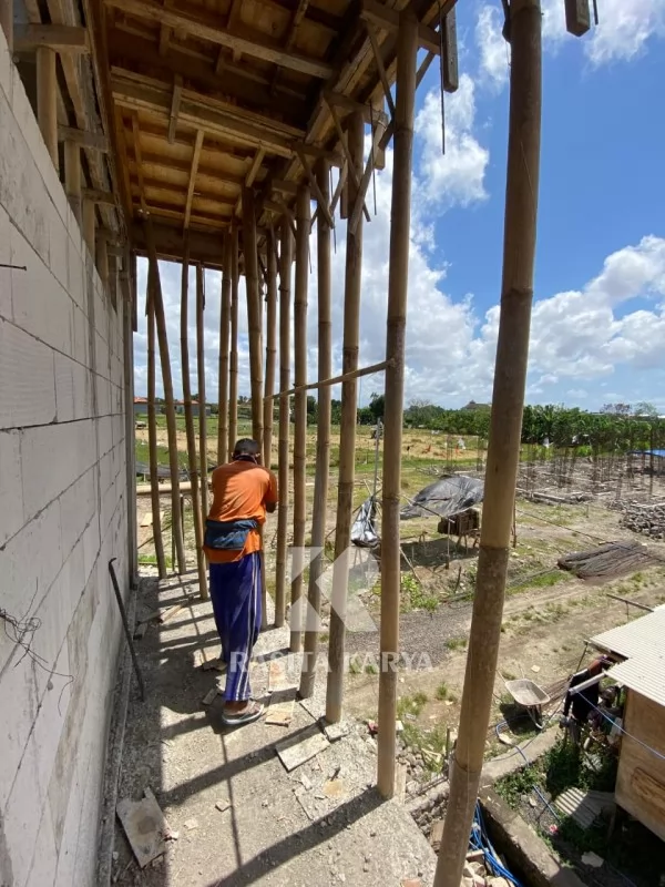 Pembangunan Villa M di Seminyak Kuta: plesteran dinding, bongkar steger, bongkar bekisting tangga
